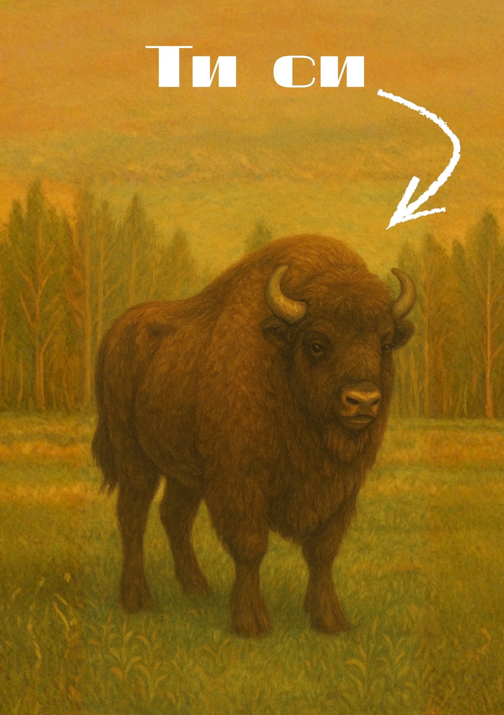 Илюстрацията е в нашия характерен стил - горски фон, юнашки зубър и леко чувство, че гледаш емблемата на някой национален парк, ама по-смешна.